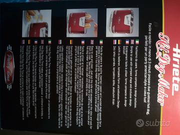 Macchina x hot dog Ariete, usata solo una volta. Praticamente nuova. Nella sua confezione originale e istruzioni per l'uso in italiano oltre che ad altre lingue internazionali.