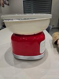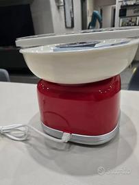 Macchina per preparare lo zucchero filato in casa, modello Ariete Cotton Candy Party time, nuovo mai utilizzato c'è ancora libricino interno e cavo di alimentazione legato. - Design retrò in rosso e bianco. - Ciotola trasparente per osservare la preparazione. - Ideale per feste e divertimento.