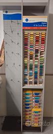 - 1 MOBILE SUPPORTO FILI PICCOLI DI VARI COLORI (OLTRE I 100), SOTTO CONTENITORI CON MATERIALE VARIO, ELASTICO, SBIEGHI, PATCH, CANETE’…E A LATO DELLO STESSO MOBILE, GANCI PER METTERE LE BOBINE GROSSE