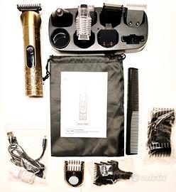 Propongo in vendita questo rasoio elettrico professionale per 1) BARBA 2) CAPELLI 3) CORPO 4) SFUMATURE E RIFITURE DI PRECISIONE Il kit trimmer include ✅Macchinetta ✅6 testine intercambiabili: 1 testina a "T" per rifinire linearmente i capelli 1 testina per rifinire la barba 1 testina a regolazione manuale 1 testina a micro lama per barba 1 testina per rifinire i peli del naso 1 testina per rifinire peli sul corpo ✅5 pettini guida per capelli (1/16", 1/8", 1/4", 3/8") ✅5 pettini guida per regolabarba (1.5mm, 3mm, 6mm, 9mm) ✅1 cavo di ricarica Tipo-C ✅1 spazzolina per la pulizia ✅1 lubrificante per lame ⚠️Si ricarica completamente in sole 2 ore e garantisce un'autonomia eccezionale di 180 minuti, perfetta per i viaggi⚠️ ⚠️⚠️ NUOVO, DIMOSTRABILE CON RICEVUTA⚠️⚠️