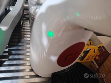 Macchina per caffè e bevande, marca Nescafé, di dimensioni ridotte, versione bianca e rossa.