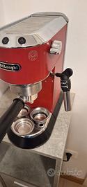 Vendo macchinetta per caffè modello De Longhi Dedica per poco utilizzo. La macchinetta è dotata di 3 adattatori per usare sia caffè in polvere che cialde compostabili. Ha anche il tubo del vapore sia per scaldare il latte che creare schiuma per il cappuccino e di cui l'adapter finale è stato sostituito da poco. Presenta delle imperfezioni e scheggiature sulla vernice come da foto. Perfettamente funzionante. Prezzo da nuova 189 euro.