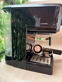 Macchina da caffè con una capacità di 1,2 litri nel serbatoio dell'acqua, consente di preparare più tazze di caffè consecutivamente. La macchina offre la possibilità di preparare espresso e cappuccino. Il cappuccinatore integrato garantisce la preparazione della schiuma di latte cremosa con una pressione della pompa di 15 Bar. Spegnimento automatico.