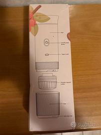Vendo macchinetta caffè portatile con scatola e accessori più supporto da tavolo in metallo.