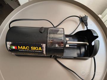 Macchinetta elettrica per sigarette modello Mac Siga Storm. Funzione: Riempie automaticamente i tubi vuoti per sigarette con il tabacco. Caratteristiche: Dispone di una regolazione per la densità del tabacco e utilizza una normale presa di corrente a 220V. Include uno scovolino per la pulizia.