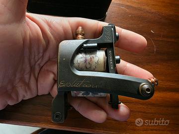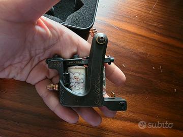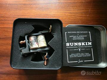 Macchinetta per tatuaggi Sunskin Small-V EVO con telaio in ottone massiccio, edizione limitata Japan Flower 2015. Un vero pezzo da collezione, apprezzato per l’affidabilità e la qualità costruttiva tipica del marchio italiano Sunskin.