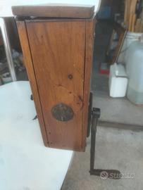 macchina macina grano manuale vintage con cassa in legno, funzionante , solo contatti telefonici , sms , chiamate , whasapp 3396464668