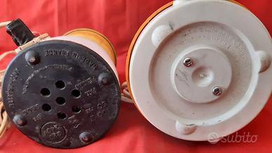 Vendo n. 3 macinini elettrici per il caffè marca Moulinex anni '50 vintage, alimentazione elettrica 115-130 V - 135 W, made in Francia, dovrebbe funzionare ma non si riesce a provare con il 220 V, misure altezza 16 cm, diametro 10,5 cm, diametro sopra 9 cm. Macinino anni '70 vintage marca Moulinex Junior, funzionante alimentazione 220 V 230 V, altezza 16 cm, diametro sotto 8,5 cm, sopra 7 cm. Macinino da caffè Moulinex arancione, non funzionante per filo staccato all'interno, altezza 18 cm, diametro sotto 11 cm, sopra 18 cm. Peso totale 2 kg. Spese di spedizione 11 euro.