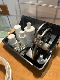 Robot da cucina compatto e potente. Facile da usare: con 2 pulsanti è possibile impastare tutti i tipi e tagliare qualsiasi cibo. Colore bianco.