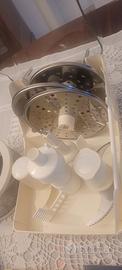 Robot da cucina Magimix Compact 3100 automatic bianco. Come da foto comprende contenitore grande e piccolo con rispettive lame ( due con coltelli in metallo ed una con coltelli pasticceria) tre dischi di cui uno per grattugiare e due per affettare, frusta per albumi a neve, incluso accessorio per centrifughe comprato a parte. Sono allegati anche i due ricettari. Disponibile per altre foto.