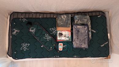 Dispositivo portatile per magnetoterapia in alta frequenza (27Mhz). Acquistato in Serbia nel 2019 da rivenditore ufficiale, utilizzato privatamente pochisime volte. Compresi un tappetino e una fascia (verdi) collegabili all'apparecchio e un coprimaterasso (grigio) BioProtector. Le istruzioni originali sono in Serbo. Presenti due piccole imperfezioni al bordo del tappetino verde e lo zip di una custodia non funziona più. Solo spedizione.