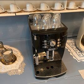 Machina da caffè, che macina automaticamente i chicchi di caffè, e si puo fare anche con caffè macchiato tipo deca e caffè normale. Puoi fare anche la schiuma. Colore nero e acciaio.