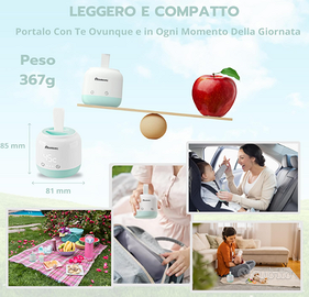 MAMAMI Scaldabiberon Portatile senza fili, Nuova Funzione Timer Integrata, Compatibile con i migliori brand, Scaldabiberon Portatile, Scalda il latte in 2 minuti (Verde/Bianco)