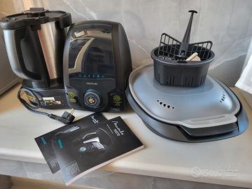 Robot da cucina multifunzione con 30 funzioni: tagliare a pezzi, sminuzzare, centrifugare, triturare, soffriggere, macinare, polverizzare, grattugiare, riscaldare, frullare, funzione yogurt, montare, emulsionare, mescolare, cucinare, girare, cucinare al vapore, sobbollire, confit, impastare, cucinare a bassa temperatura, bollire, mantenere caldo, fermentare, SlowMambo,