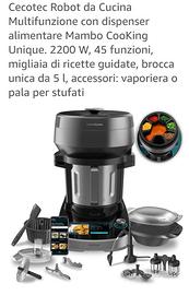 Robot da cucina Scoprite la vera rivoluzione culinaria con Mambo Cooking, il primo robot da cucina con distributore automatico di cibo. Una tecnologia unica che vi permette di godervi il vostro tempo senza rinunciare all'alta cucina. 45 funzioni Godetevi un'attrezzatura da cucina specializzata con 45 funzioni. Cucinate tutto con un unico elettrodomestico, risparmiate spazio e godete di una versatilità unica grazie al suo design multifunzione. Jarra Victory 4L: versatilità per l'uso quotidiano Cucinate con stile grazie al design ultraresistente, alla capacità di 4,5 L e alle 19 velocità. Tagliate, tritate, impastate, preparate dolci e scoprite una moltitudine di possibilità. Touch screen da 7": ricettario incluso Cucinare è facile e intuitivo grazie al display SoftScreen TFT da 7". Controllate ogni preparazione con un solo sguardo, seguite i passaggi e ottenete ricette perfette, anche se non siete esperti di cucina.