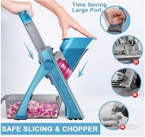 Fetta senza paura: questa affettatrice per verdure è stata progettata pensando alla tua sicurezza. Le lame sono nascoste in modo sicuro per evitare incidenti. Ha anche una base di aspirazione per garantire stabilità durante l'uso.