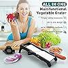 Spessore regolabile, lama girevole incorporata. Il Mandolino Verdure è ideale per tagliare fette di qualsiasi spessore, regolabile da 1 mm a 9 mm fette, Due impostazioni di arricciatura di 4,5 mm e 9 mm, basta sollevare il coperchio, quindi è possibile ruotare la piccola manopola quadrata per passare dalla lama della cialda alla lama del coltello per tagliare a julienne.