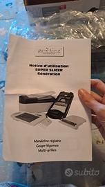 Vendo mandolina Super Slicer con 3 lame intercambiabili. Permette di tagliare verdure e frutta in modo rapido e uniforme.