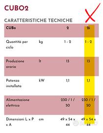 Cubo 2è il nuovomantecatore da bancopergelato dinamico. Permette di trattare una miscela di gelato o sorbetto attraverso il processo combinato di raffreddamento e agitazione, fino a raggiungere la consistenza semi-solida di un gelato mantecato; il sistema dimantecazione continuamantiene tale struttura per un tempo indeterminato, direttamente nel cilindro. È possibile inoltre rabboccare la vasca con miscela fresca. Man mano che il prodotto viene servito, è possibile aggiungere miscela liquida nel cilindro e riattivare la mantecazione per portare nuovamente in consistenza il gelato, in un tempo inferiore del 60% rispetto al tempo impiegato per la prima mantecazione. La macchina tornerà successivamente in modalità conservazione, automaticamente. Il programma diconservazione notturna, impostabile tramite timer, interrompe automaticamente qualsiasi modalità di mantecazione e/o mantenimento, mantenendo la temperatura della vasca come fosse un frigorifero. In questo modo la miscela, durante la notte, si conserva a temperatura positiva, senza alcun rischio dal punto di vista igienico-sanitario. Cubo 2i, grazie all'inverter sul motore agitatore, permette di regolare la velocità. È ideale per produrre ricette speciali comegranita sicilianaecreme fredde al caffè.