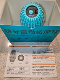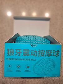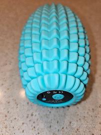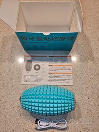 Palla ovale vibrante da massaggio a batteria INDRINIF in silicone colore azzurro, ricaricabile tramite cavo USB in dotazione, per dolori muscolari o compressione di schiena, collo e spalle.