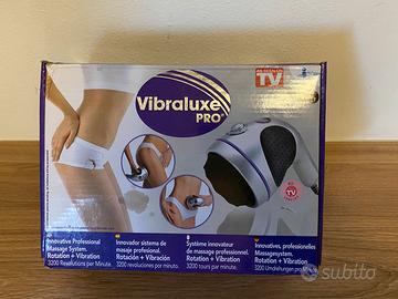 Massaggiatore elettrico Vibraluxe Pro Dotato di 5 testine si possono effettuare 3 tipologie di massaggio Utilizzabile anche in zone con muscoli tesi come spalle, schiena, polpacci Include un astuccio ed un adattatore presa inglese Utilizzato UNA SOLA VOLTA