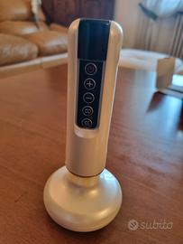 Velora Massaggiatore elettrico anticellulite regolabile a 12 livelli, adatto per cosce, glutei, braccia (Bianco). 5 confezioni di olio essenziale al ginger per il massaggio, cavo di ricarica e 5 cuscinetti.