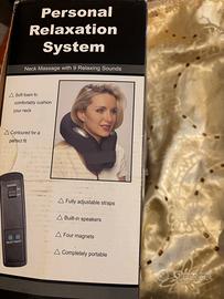 massaggiatore cervicale “Personal Relaxation System” in ottime condizioni e perfettamente funzionante. ✔️ Massaggio rilassante per collo e spalle ✔️ 9 suoni relax (onde, pioggia, natura ecc.) ✔️ Altoparlanti integrati ✔️ Telecomando incluso ✔️ Completamente portatile ✔️ Con scatola originale e alimentatore Ideale per rilassarsi a casa, in viaggio o dopo una giornata stressante.