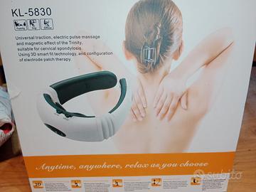 Vendo come da foto massaggiatore per il collo Neck Massager mod. KL-5830. Nuovo, mai utilizzato, con scatola, imballo originale e libretto di istruzioni in inglese e con immagini. Funzionante con 2 batterie AAA non comprese. Dimensioni max 14,5 x 16,5cm.