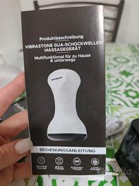 Vibrastone Gua Shockwave è un massaggiatore elettrico portatile che combina diverse tecnologie: la vibrazione, la tecnologia a onde d'urto (shockwave) e, in alcuni modelli, il riscaldamento, per alleviare la tensione muscolare e rilassare il corpo.Il termine "Gua" si riferisce alla tecnica di massaggio cinese Gua Sha, ma in questo caso si applica la tecnologia a un dispositivo elettronico che imita gli effetti di frizione e stimolazione profonda.