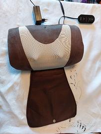 Massaggiatore elettrico con telecomando, morbido in tessuto tipo camosciato. Ha 3 funzioni: con testine massaggianti, vibranti e riscaldanti (anche tutte e 3 le funzioni contemporaneamente). Tessuto lavabile. Con laccio posteriore per aggangiarlo a un supporto (sedia/poltrona/letto).