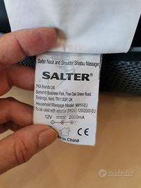 Della Selter, con 3 velocità e la funzione riscaldante, si attacca alla presa della corrente. Sono due parti distinte con ognuna 4 sfere che girano. Non c'è la scatola né il manuale di istruzioni ma è perfettamente funzionante ed è intuitivo da usare.
