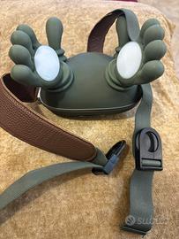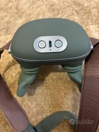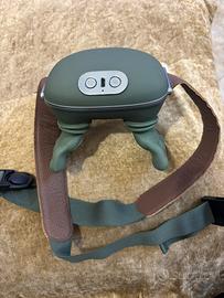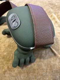 Massaggiatore schiena e collo: caricabile, portatile, con cinturino regolabile e facile da usare. Colore verde scuro e di piccole dimensioni.