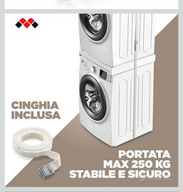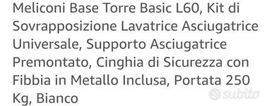 Meliconi Base Torre Basic L60, Kit di Sovrapposizione Lavatrice Asciugatrice Universale, Supporto Asciugatrice Premontato, Cinghia di Sicurezza con Fibbia in Metallo Inclusa, Portata 250 Kg, Bianco