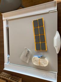 Meliconi Base Torre Evo L60 – Kit Sovrapposizione Lavatrice/Asciugatrice NUOVO Vendo Meliconi Base Torre Evo L60, kit universale per sovrapporre lavatrice e asciugatrice. Il prodotto è nuovo, completo di scatola e contro-scatola originali. È stato aperto solamente per verificare il contenuto, ma non è mai stato montato né utilizzato. Condizioni perfette: segnalo solo una piccola imperfezione visibile in foto. Caratteristiche principali: •Kit universale compatibile con la maggior parte di lavatrici e asciugatrici (60 cm) •Ripiano estraibile in legno, molto comodo come piano d’appoggio •Supporto premontato, facile da installare •Cinghia di sicurezza inclusa •Portata massima: 250 kg •Colore: bianco Ideale per ottimizzare gli spazi in casa in modo sicuro e pratico. Consegna: a mano oppure spedizione a carico dell’acquirente