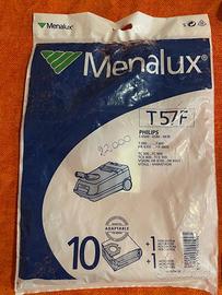 Sacchetto per aspirapolvere MENALUX T57F. Nella confezione sono presenti n°7 sacchetti Compatibile con: PHILIPS – S6500 – 6580- 6838 T.300- T.800 HR 6300 – HR 6800 TC 309- TC999 TCX 400- TCX999 VISION: HR 8700- HR 8999 VITALL – MARATHON Il prezzo indicata non comprende le spese di spedizione
