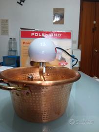 Mescola lentamente e in modo continuo direttamente nel paiolo in rame alimentare, così la cottura viene omogenea, senza grumi e senza fatica.