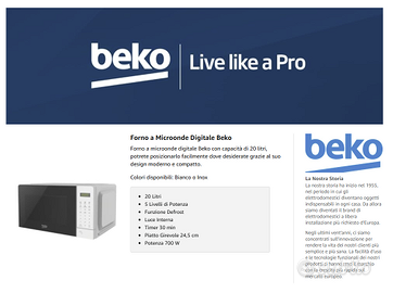 Microonde Beko, colore bianco, in ottime condizioni. Piatto girevole da 24,5cm. Potenza forno 700W. 5 livelli di potenza.