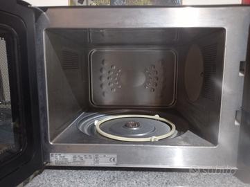 Vendo microonde con display e rotella per regolare il tempo, manca il piatto interno in vetro, ogni tanto la rotella non funziona, però se apro e richiudo riparte, microonde funzionante.Largh. 47 prof.35 alt.28