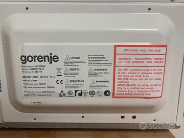 Microonde Gorenje da incasso o da appoggio, modello MO 20 DW, con finitura bianca.