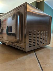 Il forno, con comandi manuali, ha una capacità di 23 litri ed dotato di 3 differenti sistemi cottura: microonde, grill e combinato (microonde + grill).