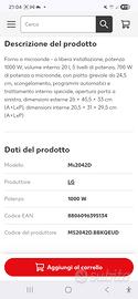microonde LG nuovo in garanzia mai aperto dettagli e descrizione allegate nell'ultima foto
