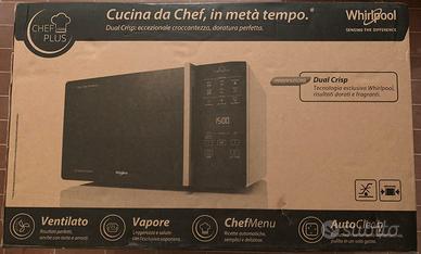 Forno a microonde chef plus + grill, 5 funzioni di cottura: vapore, crisp, ventilato (1700w max), grill (900w max) e microonde (800w max), dotato di un potentissimo grill al quarzo per grigliare e gratinare alla perfezione la superficie dell'alimento