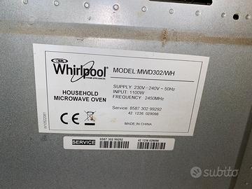 Vendo forno a microonde Whirlpool modello MWD302/WH (colore bianco), compatto e funzionale, ideale per chi cerca semplicità d'uso e affidabilità.