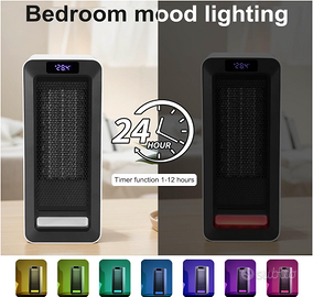 PROTEZIONE DI SICUREZZA MULTISTRATO E 7 COLORI DI LED - Progettato con materiali ignifughi V0, protezione contro il ribaltamento e il surriscaldamento, blocco per bambini e funzione di spegnimento automatico di 12 ore, il nostro riscaldatore dà priorità alla tua sicurezza. 7 opzioni di colore tra cui scegliere e cambiano colore da davanti a dietro