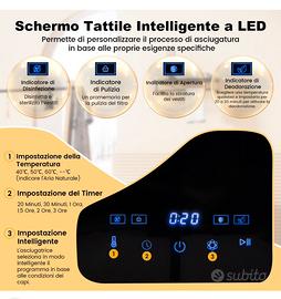Asciugatrice portatile con cestello in acciaio inox da 5 kg, touchscreen a LED.