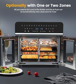 Mini Forno ad Aria 23 Litri, Emphsism Friggitrice ad Aria Doppio Cestello 1800W, Airfryer con LED Touch Screen, 15 Funzioni Preimpostate 11 Accessori e 1 Ricettario