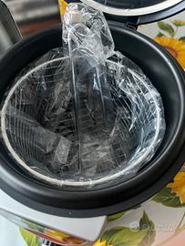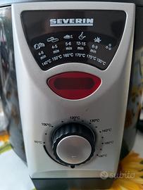 È dotata di un termostato regolabile e di un pannello con tempi di cottura suggeriti per diversi alimenti come patatine, pollo, pesce e verdure.