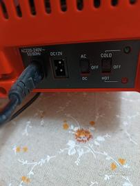 Funzionante ma manca il filo per collegarlo in auto e mensolina interna. Usato in ufficio sei mesi con bottiglie grandi.