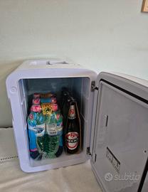 Mini Frigorifero 15 Litri bianco marca Moncook. Acquistato nel maggio 2024, perfettamente funzionante completo di cavi (spina europea, inglese, usb e 12V) come nelle fotografie. Per bottiglie non più alte di 31 cm. Vendo causa smarrimento separatori interni e portalattine della porta. Zona Bergamo/Brescia lago d'Iseo