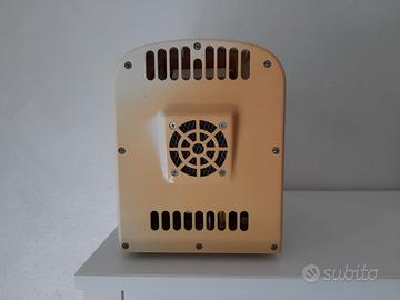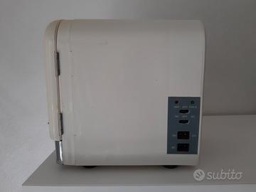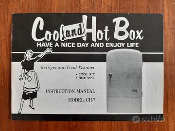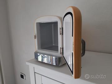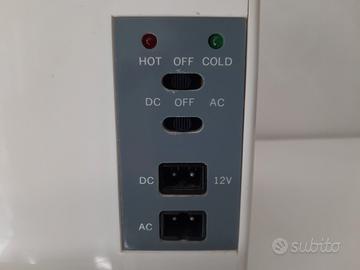 Mini frigorifero/riscaldatore, con coppia cavi per alimentazione casalinga e spinotto accendisigari per auto o camper.